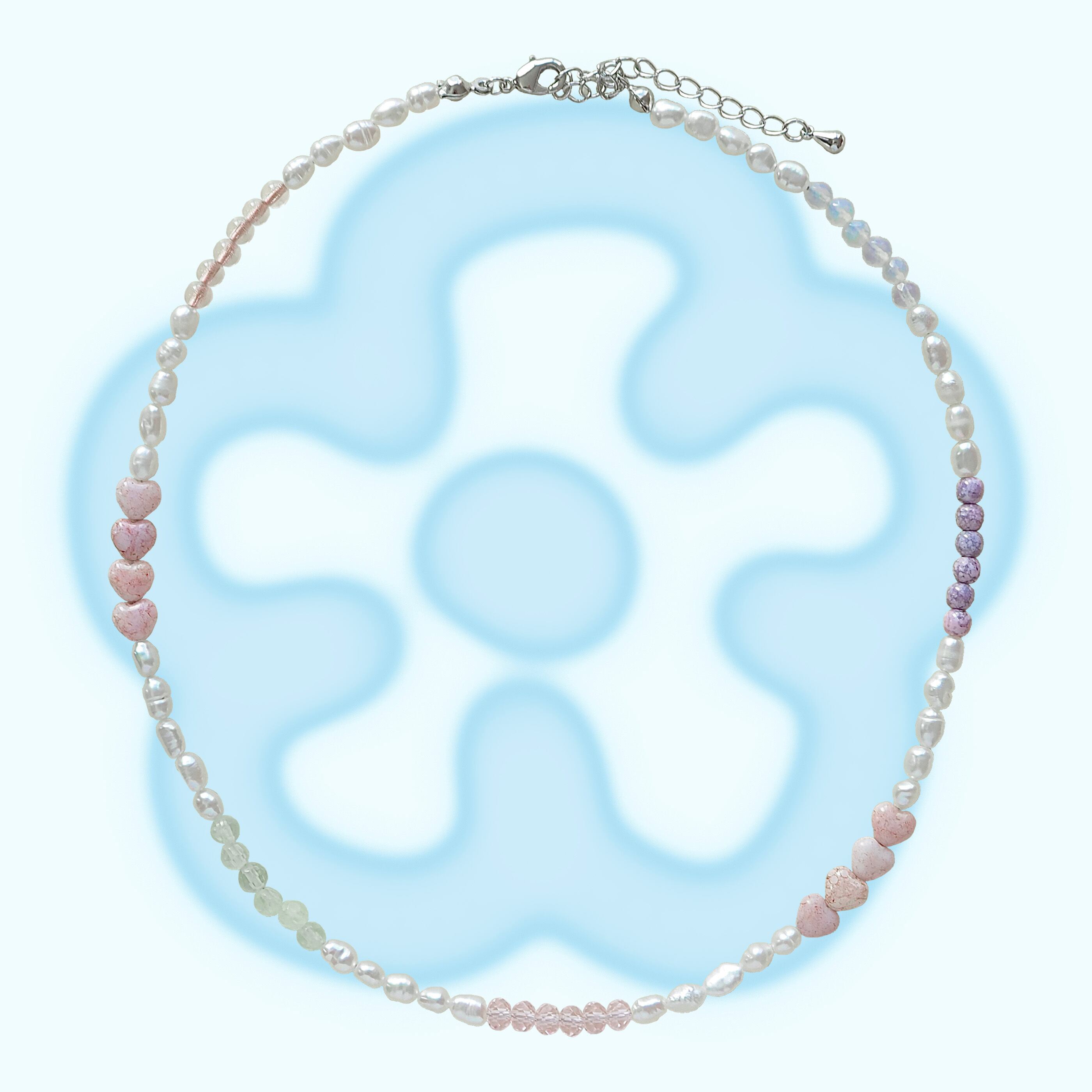 ・特に淡水パールは貝から生まれるため、形のばらつきや黒い斑点があるものなど様々です。ランプワークビーズは形の歪みや、製作工程でひびが入ったものもございます。ひびは品質に問題はございませんのでご了承下さい。